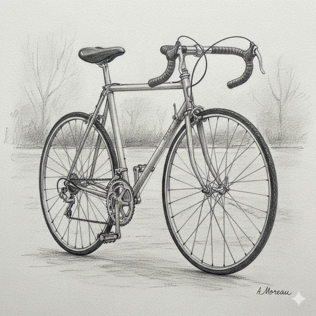 Unfortunately, it’s your only trick. Because you remove images from our chats after a week, this is the second time I’ve had to give you these prompts, and every time I push you to do something even a little creative, you give me these scribbles. This completely undermines the pass I’d otherwise give you for minimal technical accuracy (those handlebars suck!)