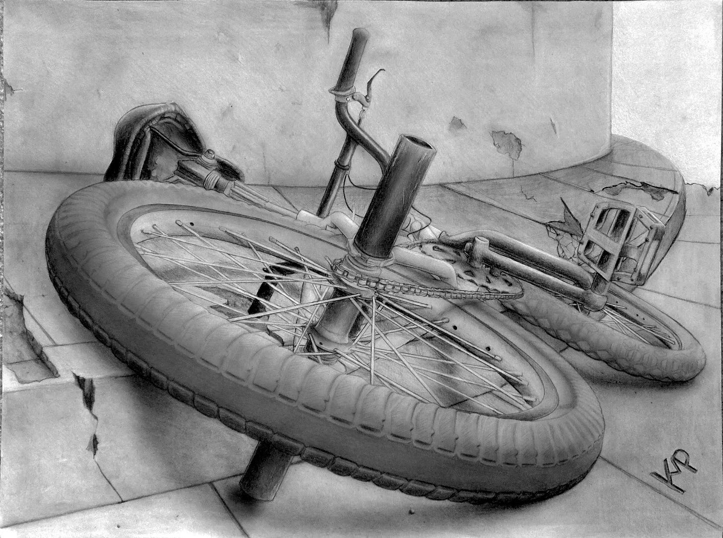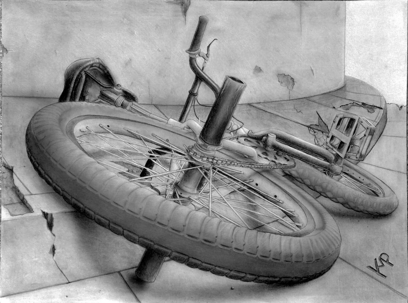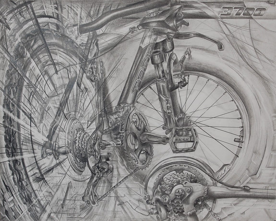 You may approach the drawing in any way you wish. For example, your drawing may be an abstract expression or a realistic rendering; you may choose to draw an object alone or place it in a situation; you may choose to cover the entire surface of the page or only a small portion of it, etc. Other than the stated requirements related to subject (ie, bicycle), medium (ie, graphite pencil) and paper size (16” x 20”), everything and anything else are up to you.
