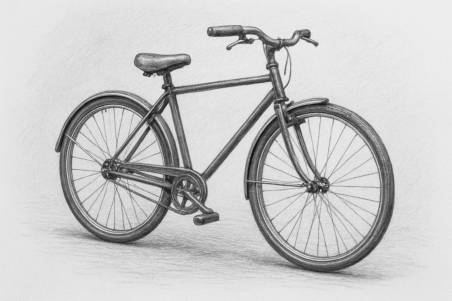 I’m going to make a bunch of AI tools generate images with three different prompts. The first will literally just be asking it to draw a bike in graphite: