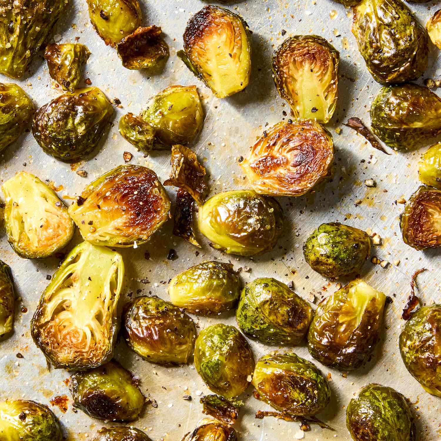 The other secret is in the dressing. You have to put the salt, pepper, and oil on at least 15 minutes in advance of them going in the oven. The oil seeps in between the leaves, making the inside of the sprout creamy instead of hard & crunchy.